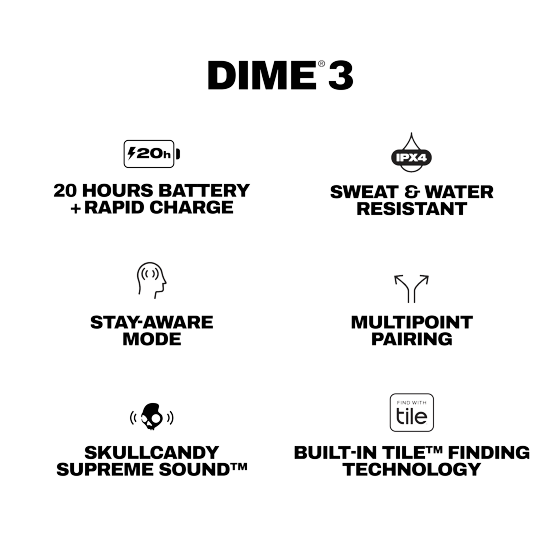 Skullcandy Dime 3 XT True Wireless in-Ear Earbuds, True Black
