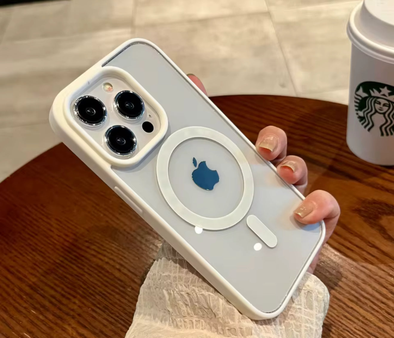 White Magnetic Acrylic Transparent Colored Trim MagSafe Case